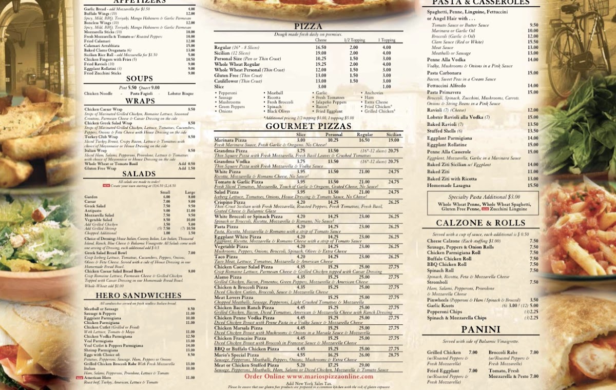 What sets Mario's apart is the exceptional service, with staff members like Brian providing friendly and attentive care. The cozy atmosphere invites you to savor each dish, whether you're grabbing a quick slice or enjoying a leisurely meal.